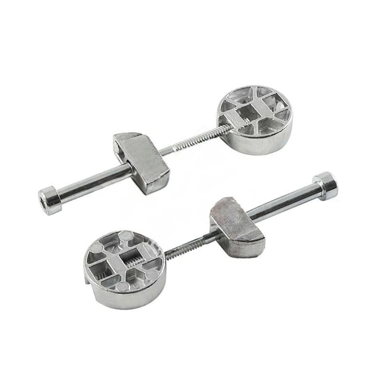 Стяжка металлическая за счет своих компактных размеров в основном применяется для стягивания тонких плит и столешниц толщиной от 10 мм таких как HPL Compact 12мм.